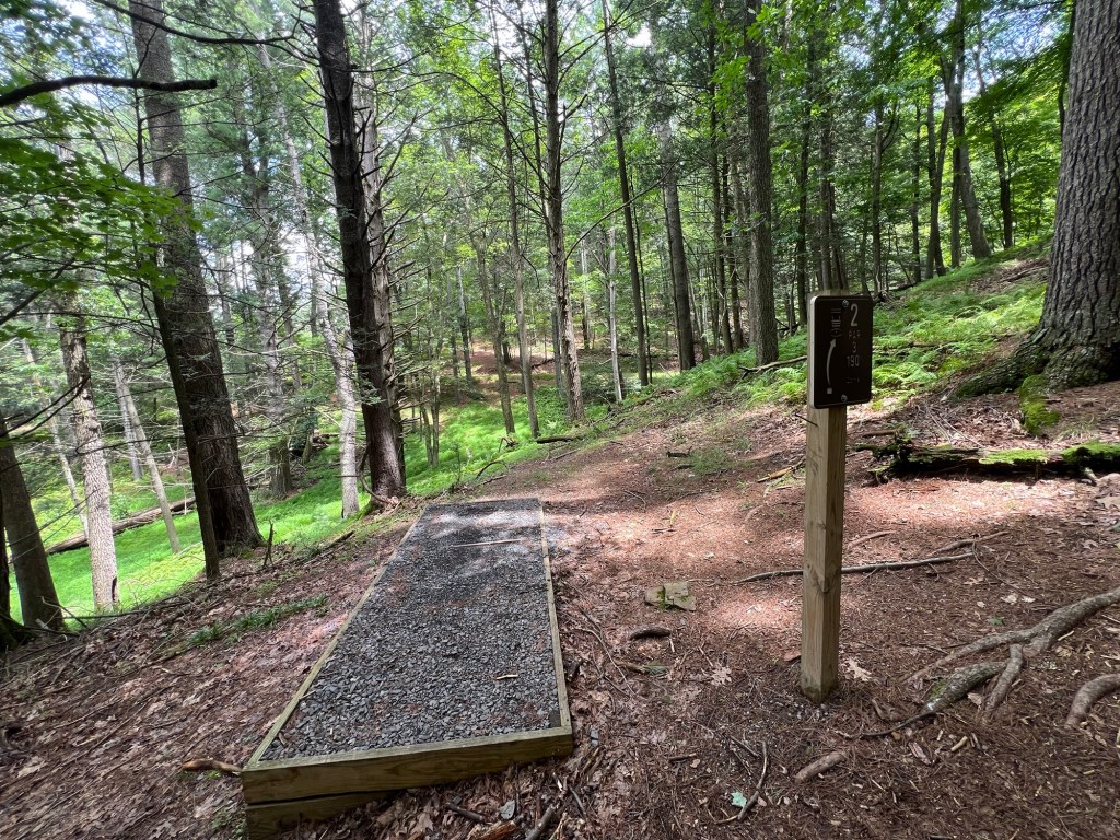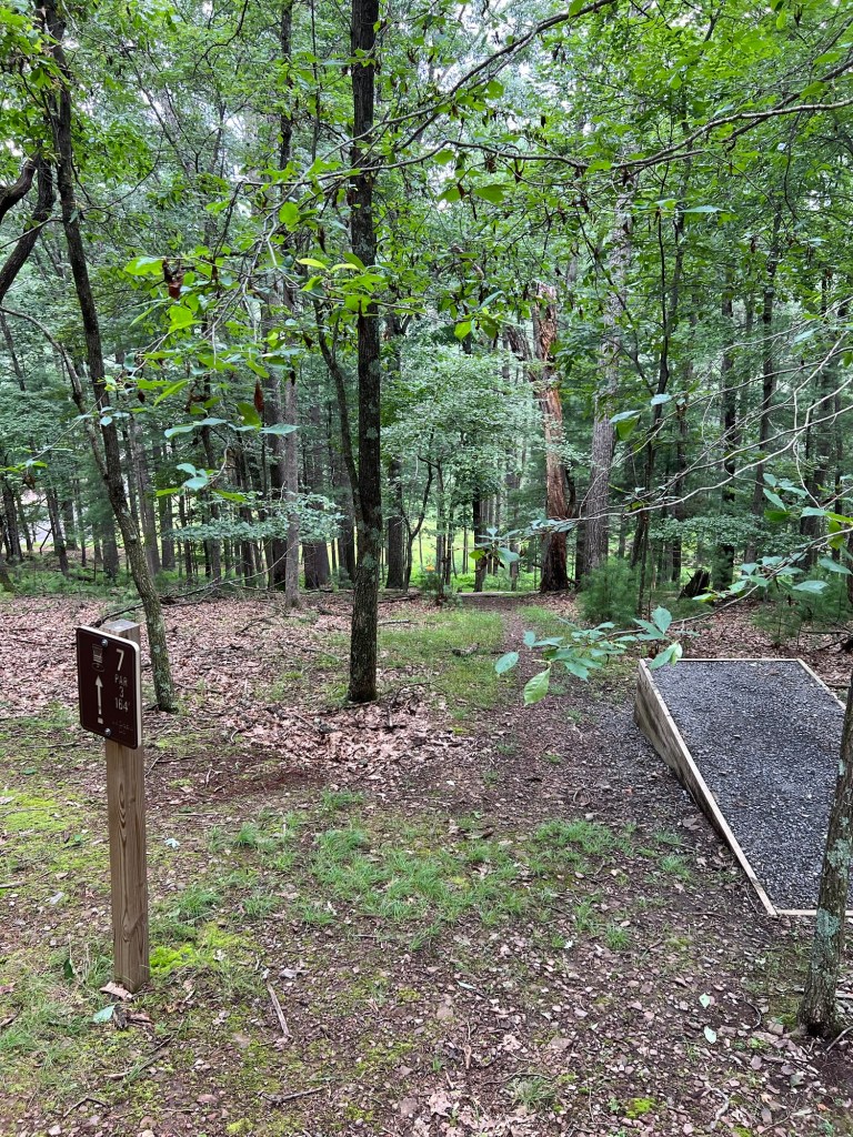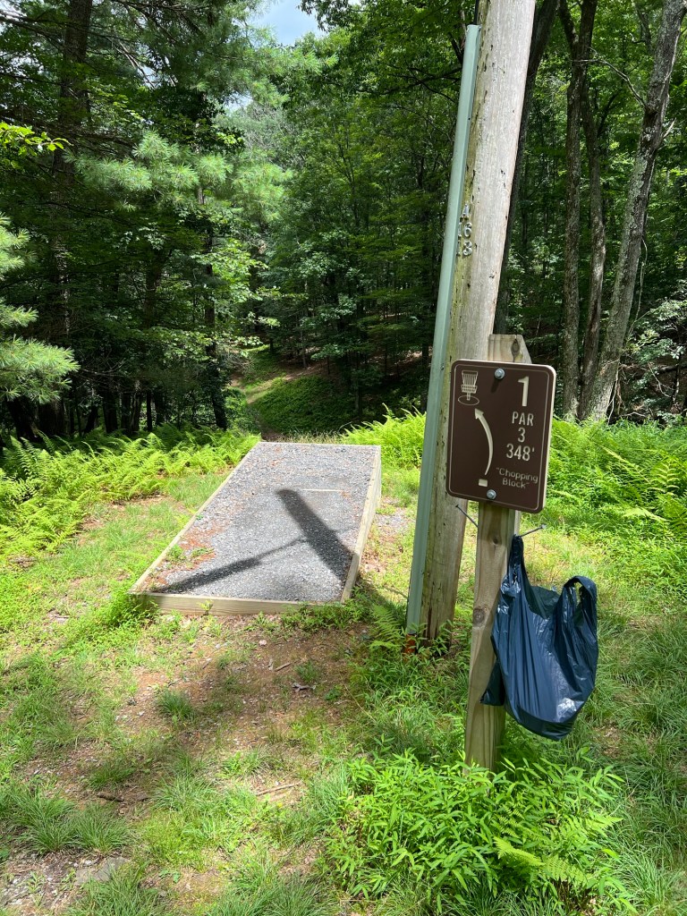 Hole 1 – I reached my max HR just climbing up to this tee!Lots of throws across ravines with trees in the wayJust an easy downhill through the trees with a steep drop off behind the basket…An elevation view of hole 11 (I think), one of my few birdiesCreek comes into play on hole 12 and stays in play through #17